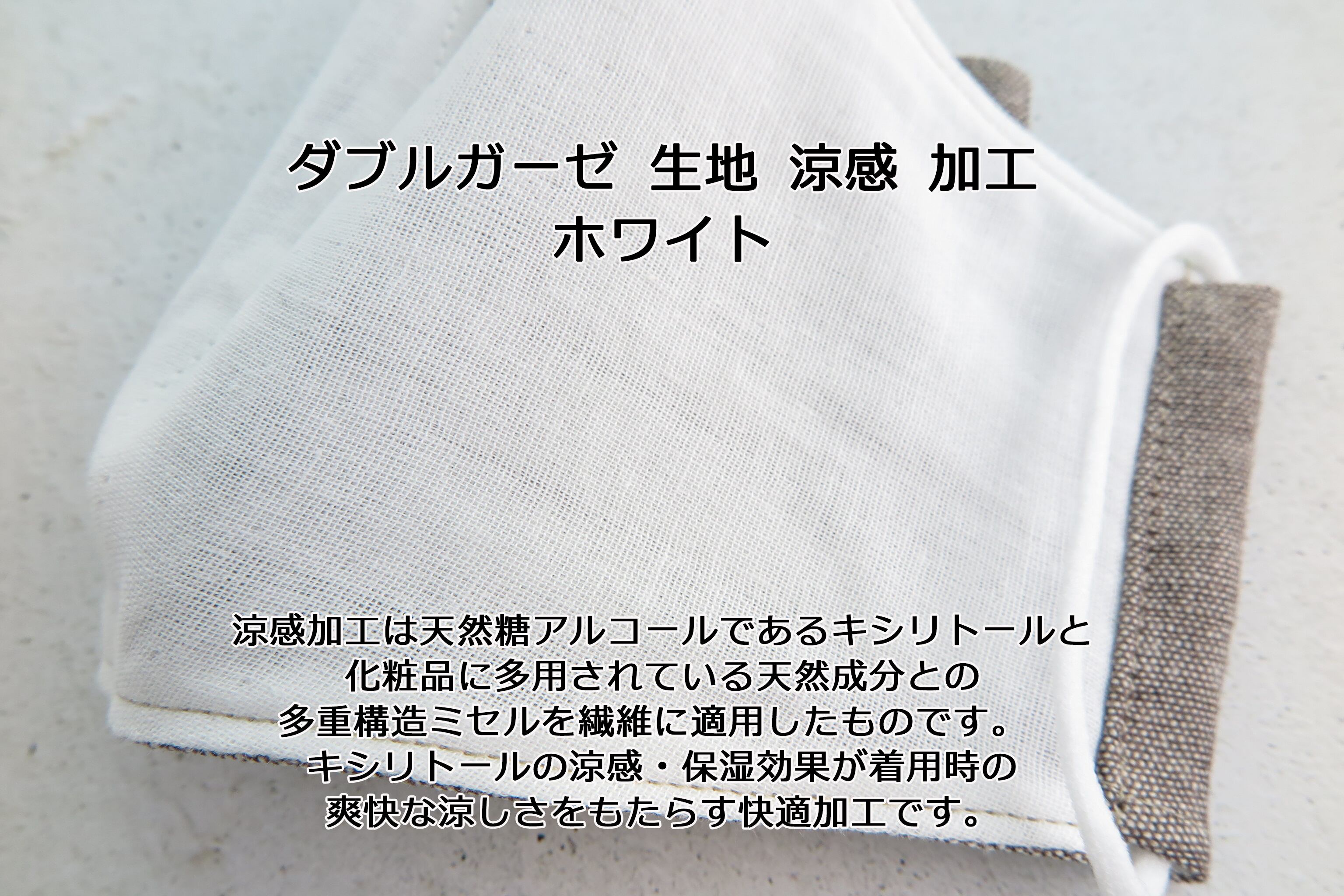 裏はダブルガーゼ仕上げです。ベージュのゴムは白です。